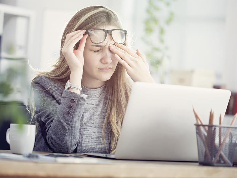 Hours of staring at the screen also reduces the blinks of our eyelids. The tear film is not refreshed frequently enough.